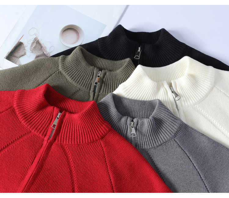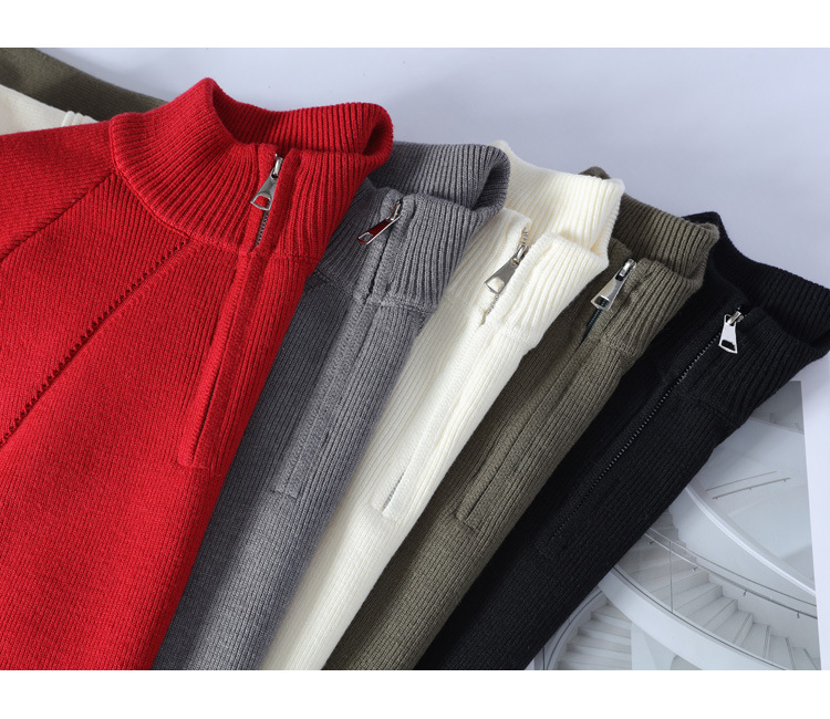 American vintage semi-turtleneck zipper sweater men's fall and winter
